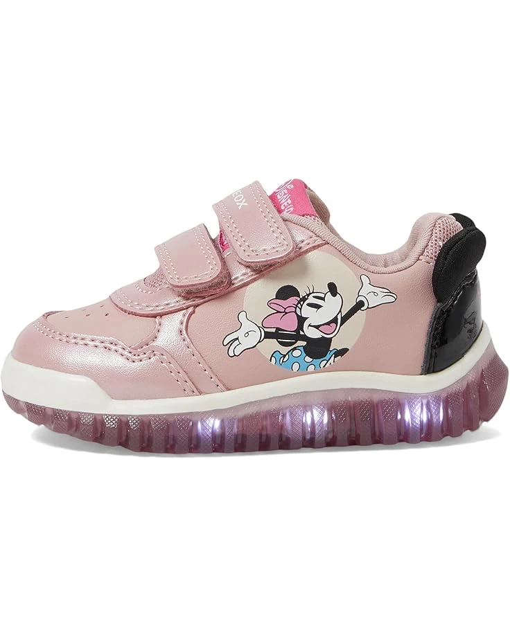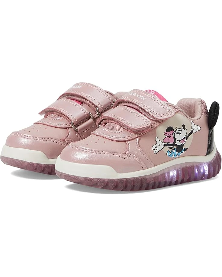 - Let your baby embrace the refined style and premium comfort of Geox® Kids B Lightyloo Girl Shoes. With functional double hook-and-loop closure, round toe design, and attractive minni mouse detailing, these low-top shoes will bring a smile to your girl’s face. These are crafted in a breathable-waterproof membrane with a polyurethane upper with an on/off icon on the instep of the shoe, removable cotton insole, and a thermoplastic elastomer outsole with lighted details.