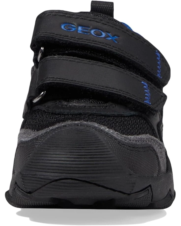 - Add this high level of sophistication wearing the Geox® Kids Buller 9 footwear. Made of leather bovine, nappa, and suede upper, it has round toe with double hook-and-loop straps. A heel pull-tab, water resistant breathable membrane, and leather goat full grain insole gives little kids superior performance.