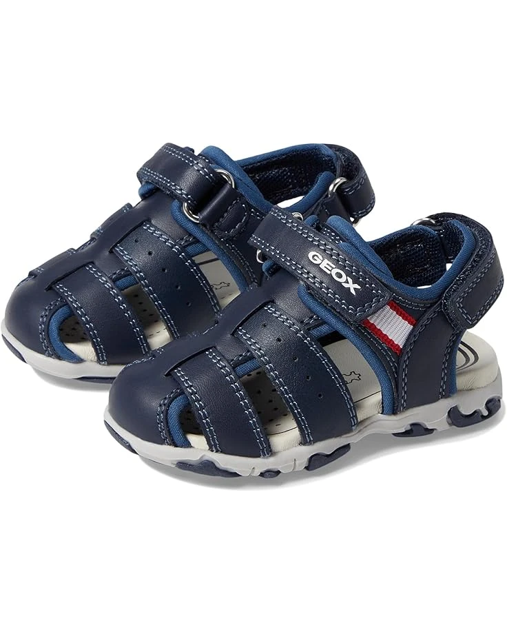 - Let your kiddo take that extra step wearing the super comfortable and water-resistant Geox® Kids Flaf Feebo 2 Sandals. The fisherman-style footwear features leather and synthetic polyurethane upper construction with adjustable hook-and-loop strap closure.