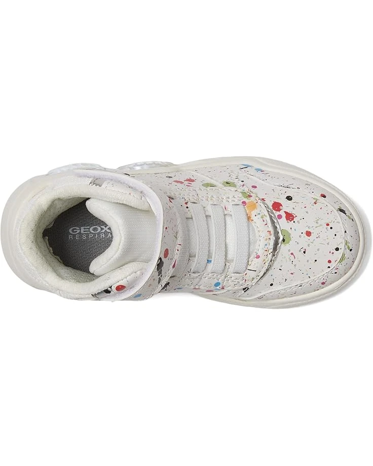 - Shine on: Comfort & confidence in every step with Geox® Kids Illuminus Girl 3. Featuring a chic PU upper and a hook-and-loop closure with lace design, these high-top sneakers boast a breathable and waterproof membrane, keeping little feet dry and cool all-day. The polyester lining and insole ensure plush comfort, while the EVA outsole offers superior traction and durability. With a round toe and perforated sole, every step is a delight of support and breathability.