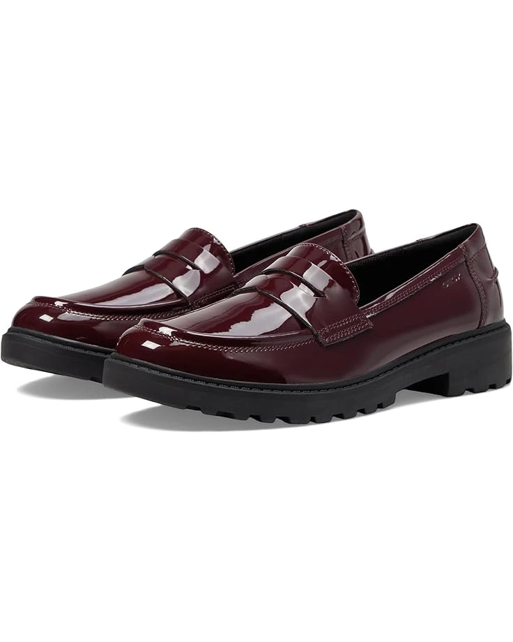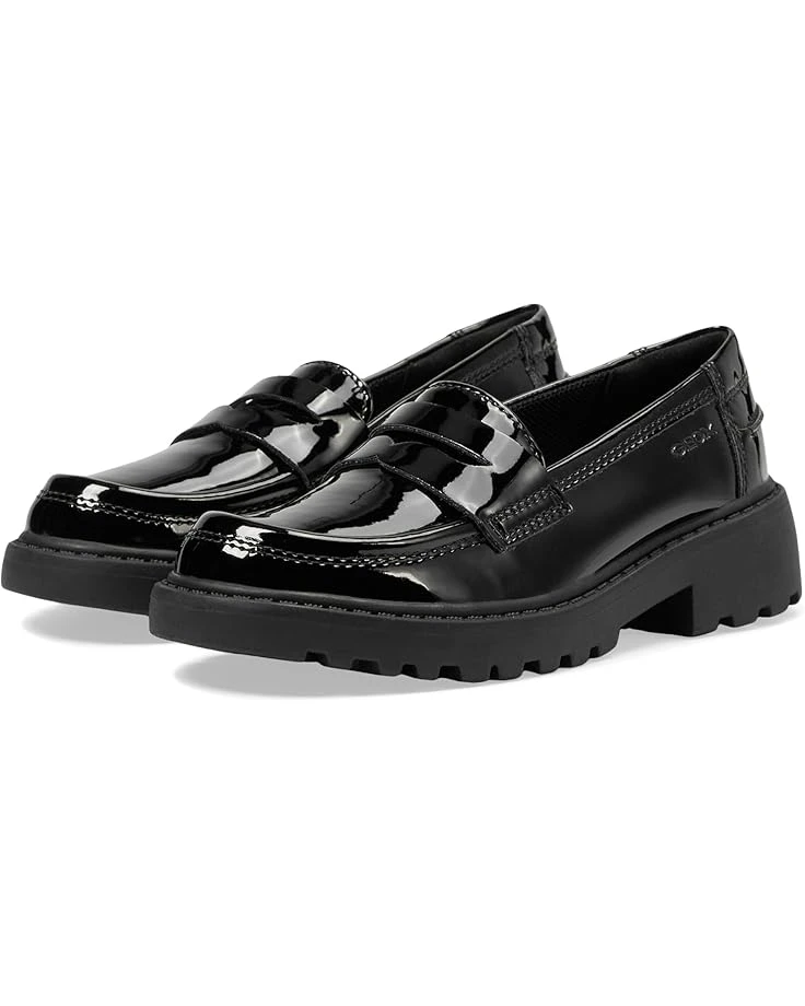 - Perfect to pair with your kid’s different outfits and styles, the Geox® Kids J Casey Girl shoes come in an easy-to-slip style. The polyurethane upper, leather insole, and polyester lining of these loafers make them a comfortable footwear choice. These penny loafers feature a breathable and waterproof membrane that keeps your kid’s feet dry. For children from 6 years and up, these shoes are perfect for everyday wear.