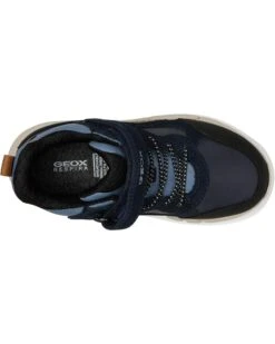 - Geox™ patented breathable shoe for active kids features a unique microporous membrane that absorbs and expels sweat while keeping water out.