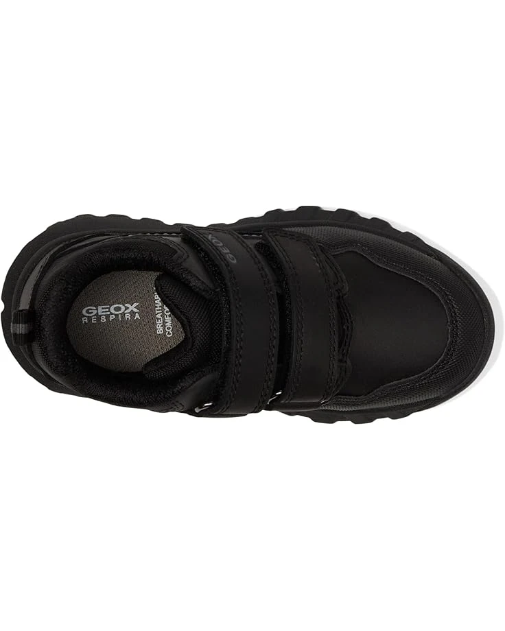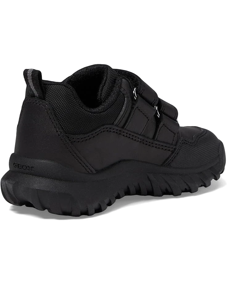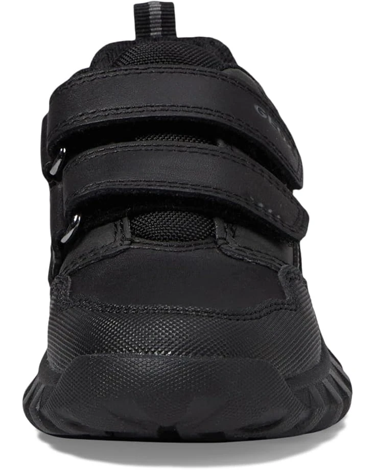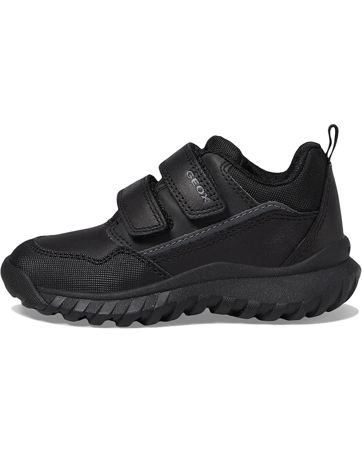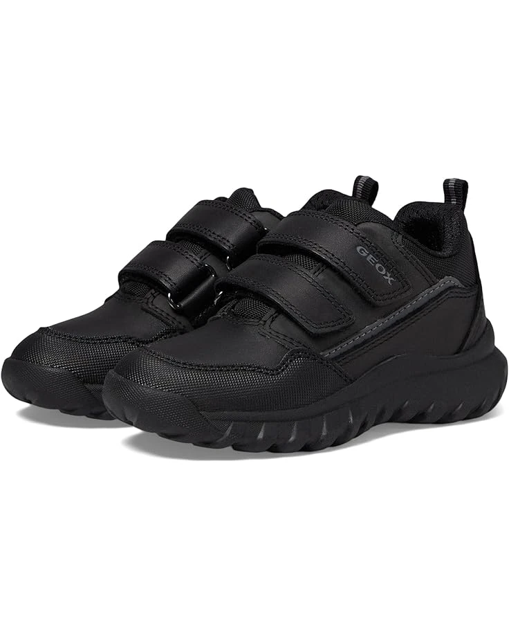 - Let your child explore the world in style with Geox® J Simbyos Boy, where fashion meets function! Perfect for active kids, these shoes feature a durable PU upper, cozy polyester lining and insole, and a robust rubber outsole for maximum grip and stability. The easy hook-and-loop closure ensures a secure fit, while the round toe provides ample room for growing feet. Designed for comfort and long-lasting wear, these shoes are ideal for playground adventures and everyday escapades.