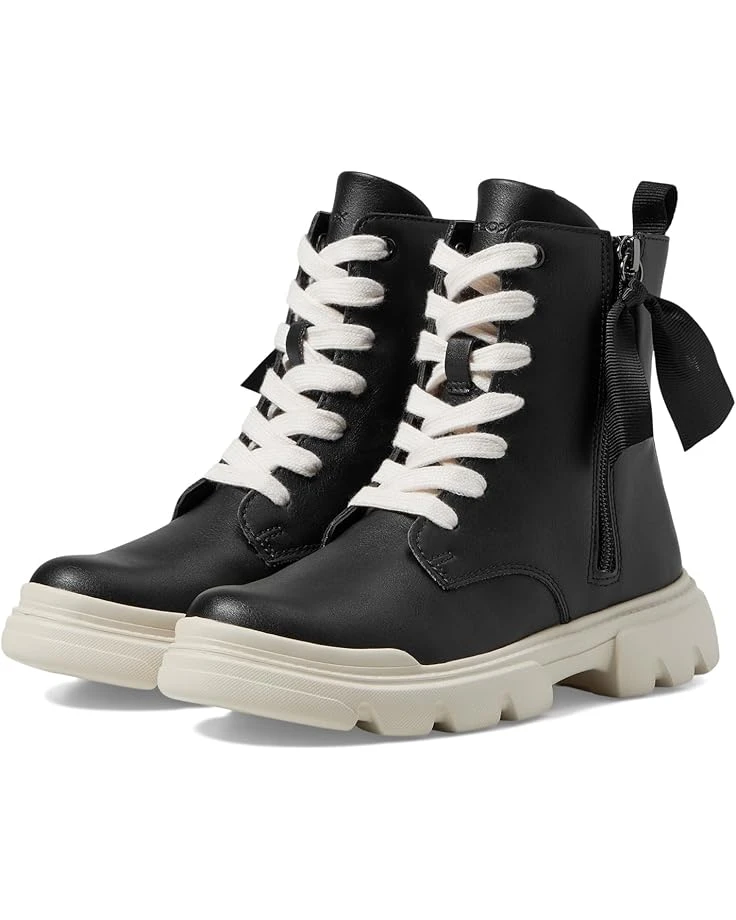 - Fun that lasts! Geox® Kids Junette Girl: Style meets comfort for all-day adventures. Featuring a chic PU upper for durability and style that lasts. The polyester lining and insole ensure cozy wear, while the EVA outsole offers lightweight, cushioned support for all-day play. Ankle high design provides extra support and stability, perfect for active little feet. The round toe gives ample room for natural movement, and the zippered side closure ensures easy on and off.