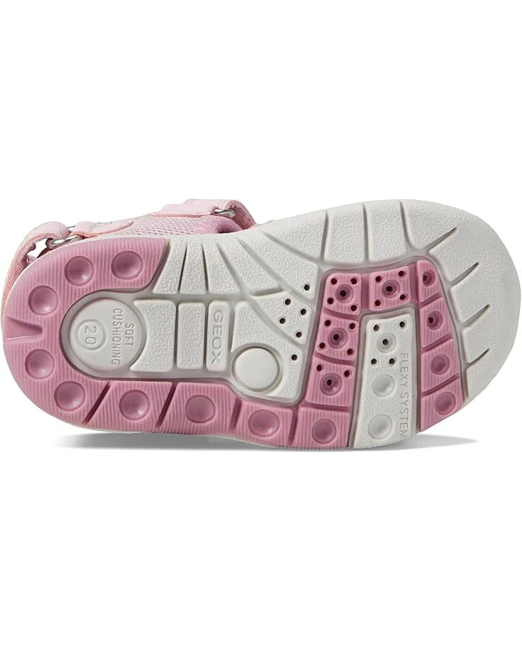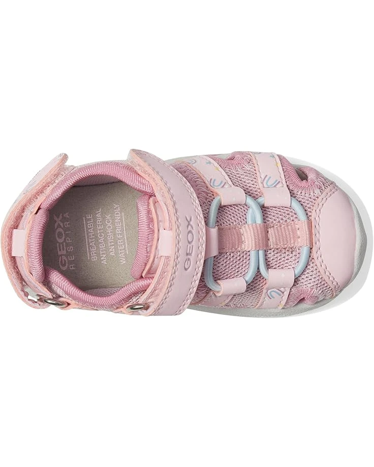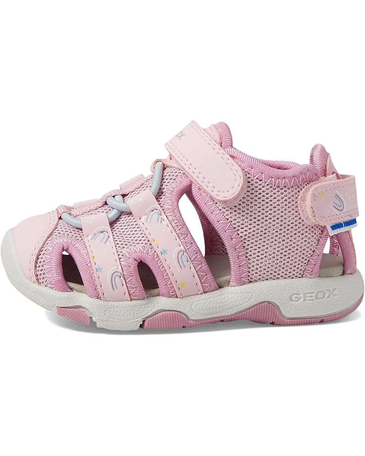 - She’ll enjoy her next outdoor adventure in the comfy Geox® Kids Multy 15 sandal. This sandal offers a hook-and-loop strap closure for easy off and on access, closed round toe, allover print, and a waterproof membrane for natural temperature regulation in a lightweight design.
