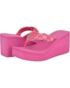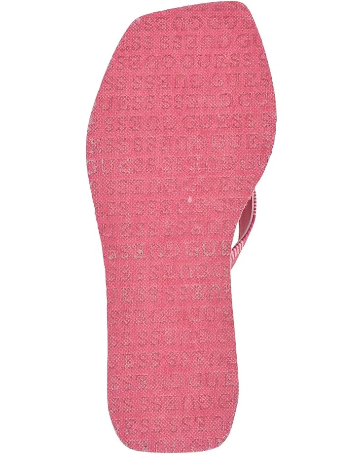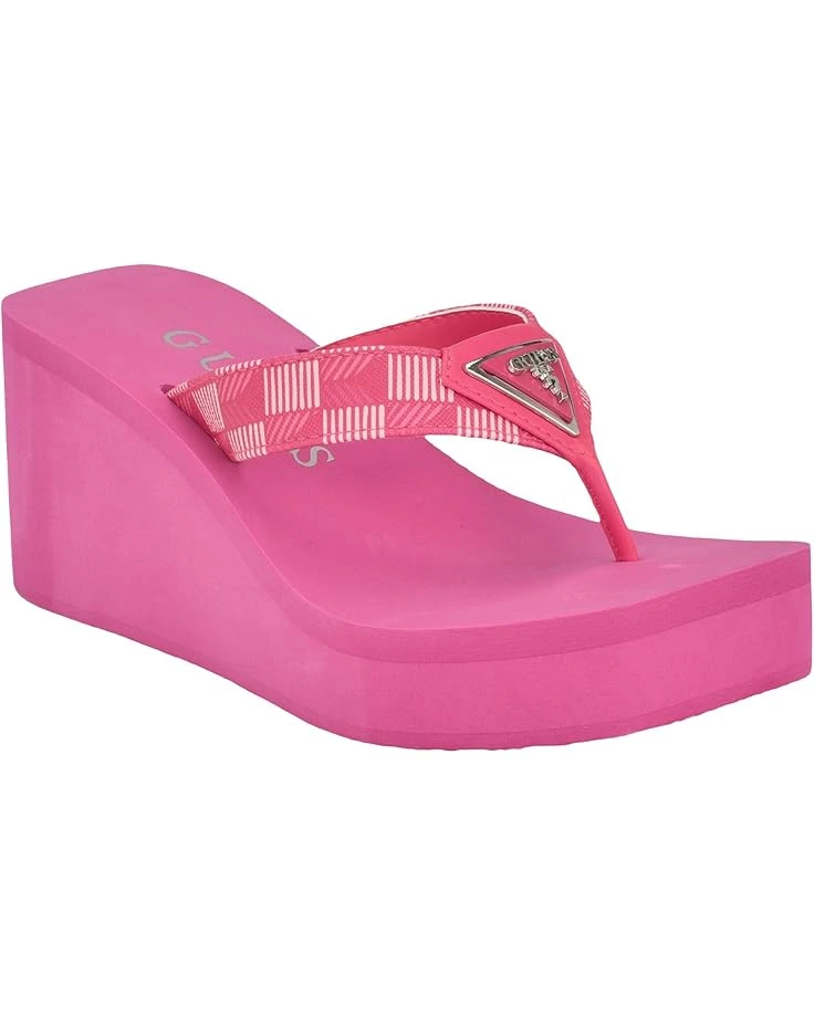 - Get the perfect elevation while being perfectly fashionable wearing GUESS® Demmey Sandals. The slip-on footwear features a soft toe-post strap with high-platform heels and open square toe silhouette.
