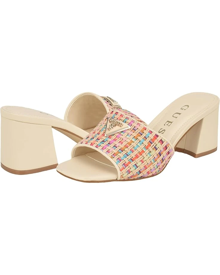- Walk with confidence in the vibrant mesh accented GUESS® Gables wedge sandals. the easy slip-on’s are made lightweight with a textile upper and man-made lining that looks gorgeous with bold and polished block heels.