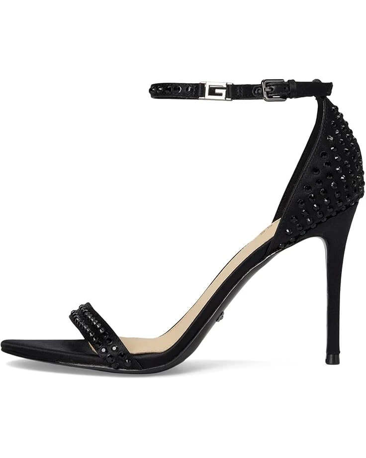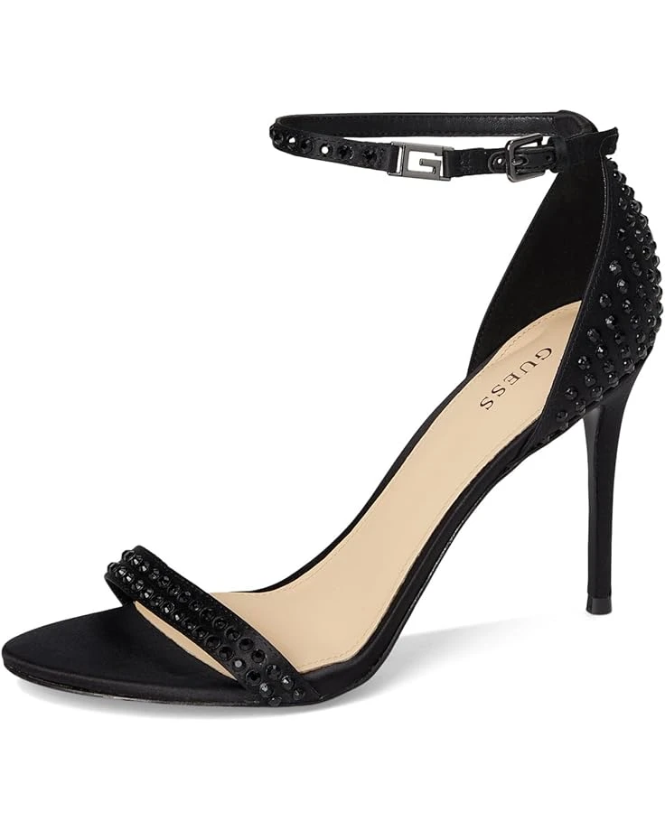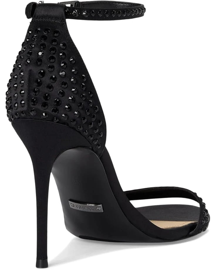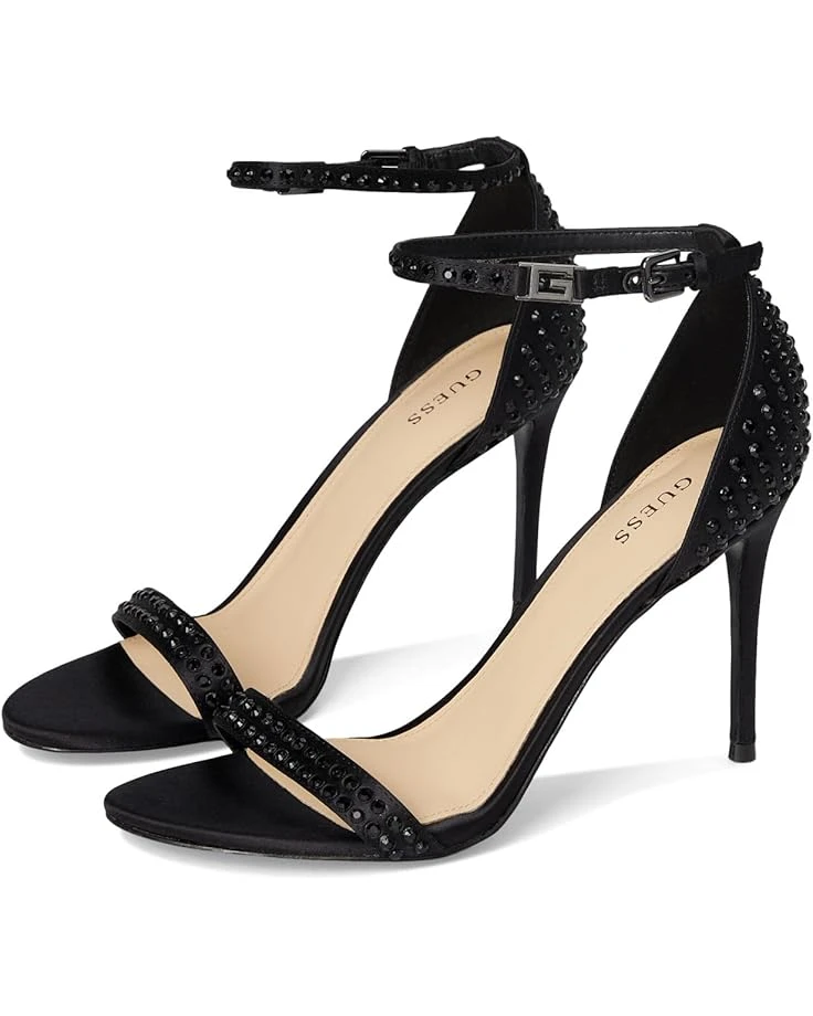 - Complete your look with these timeless GUESS® Kabaile heeled sandals. The strappy dress sandal style is crafted from rhinestone studs and fastened with an adjustable ankle strap and buckle detail. A high stiletto heel completes the elegant design.