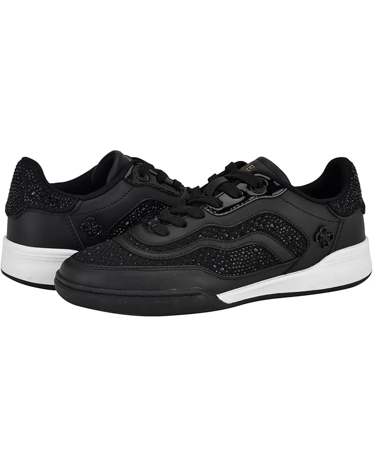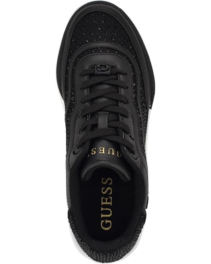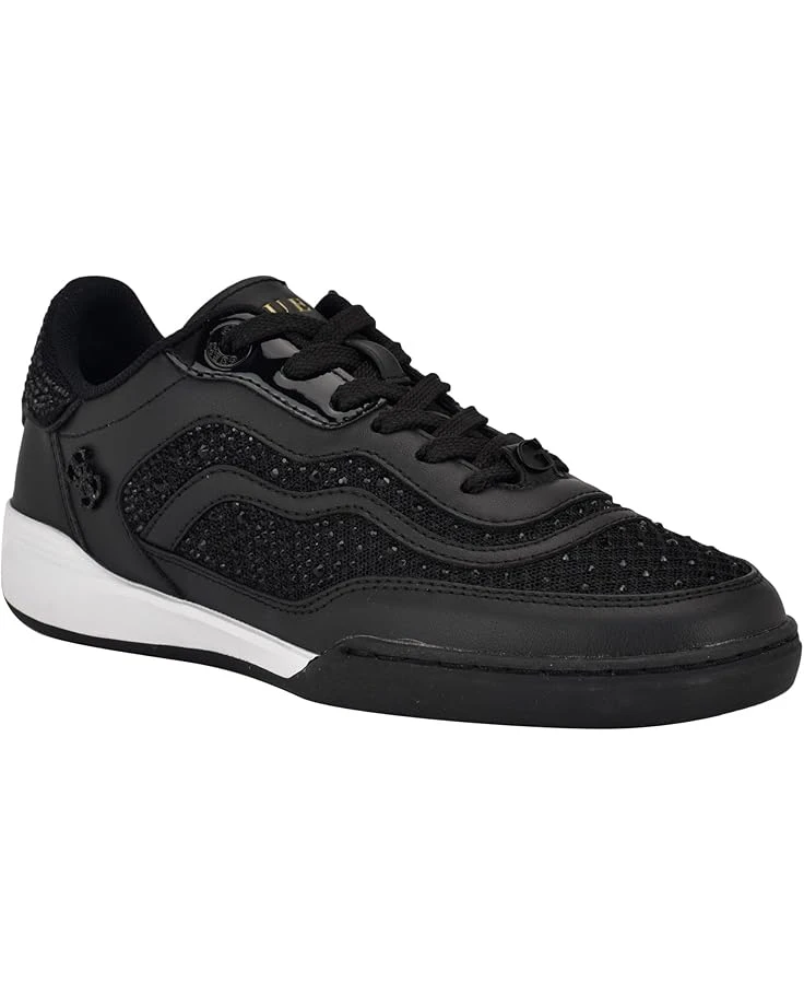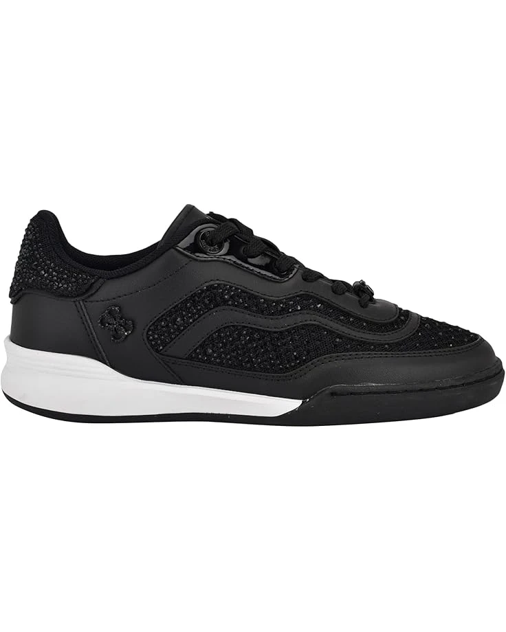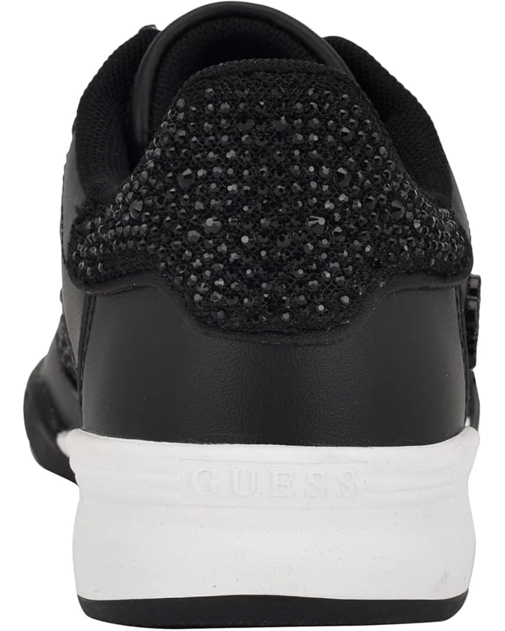 - Shimmering rhinestones embellish the GUESS® Pritie, a classic lace-up sneaker grounded by a retro-inspired sole. The footwear features polyurethane upper construction with textile lining and cushioned insole for all-day comfort.