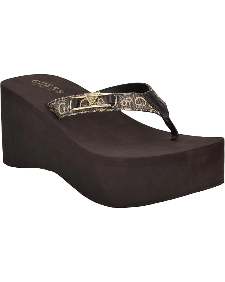 - Walk in the comfort of the stylish GUESS® Ridges slippers made featuring a lightweight EVA thong wedge design with man-made lining and upper, completed highlighting a round toe construction.