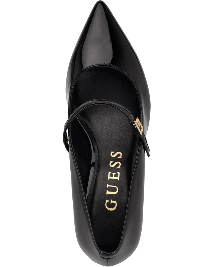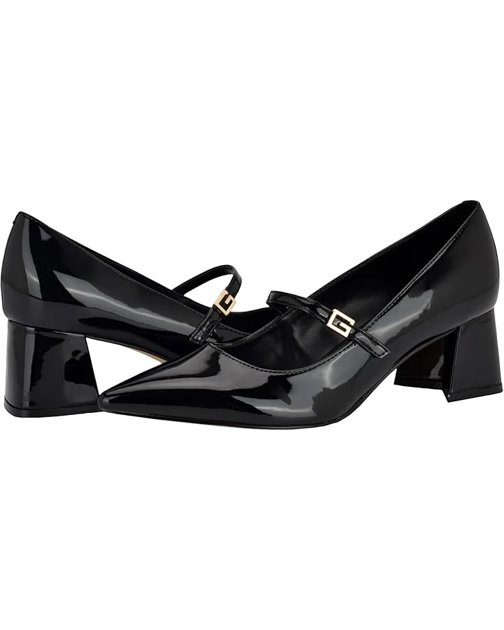 - The GUESS® Zands is an elevated silhouette you do not want to miss out on. The beautiful patent leather upper along with the maryjane strap adds the perfect amount of detail to a classic block heel.